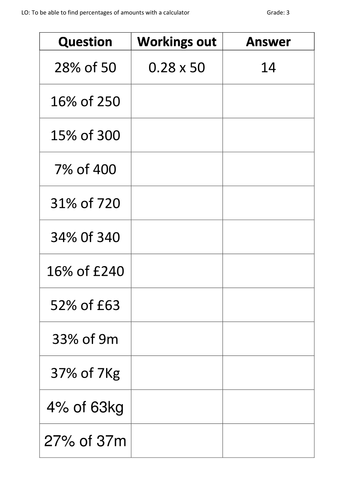 Percentage worksheets percentages of numbers.
